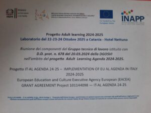 Nei giorni 22, 23 e 24 ottobre 2025, a Catania, si è svolto il IV Incontro del Gruppo di Lavoro Tecnico nazionale (DD della DGOSVI del MIM prot. n. 678 del 23.03.2024) del Progetto AdultLearning Agenda 2024- 2025.